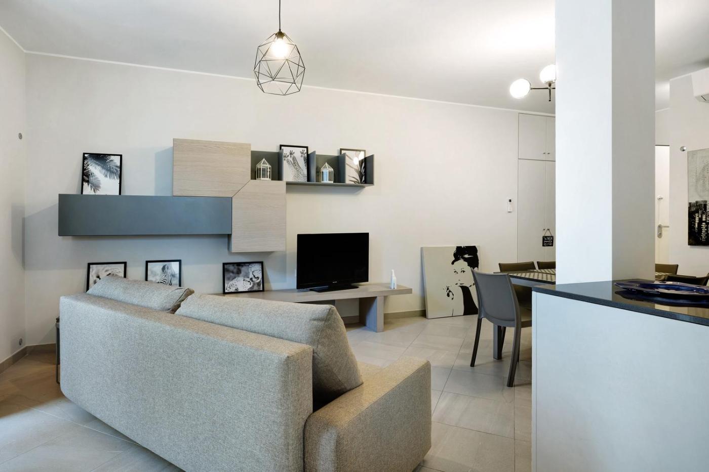 Questo appartamento con aria condizionata comprende 2 camere da letto, un soggiorno, una cucina con utensili, lavastoviglie e macchina da caffè, e 2 bagni con doccia edi cortesia. Presso questo appartamento troverete asciugamani e lenzuola tra i servizi disponibili.