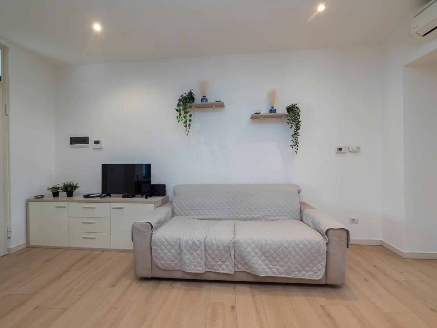 Appartamento con 1 Camera da Letto. This air-conditioned apartment features 1 living room, 1 separate bedroom and 1 bathroom with a shower. Meals can be prepared in the kitchen, which has a stovetop, a refrigerator, kitchenware and an oven. The apartment features a washing machine, a tea and coffee maker, a seating area, a dining area, as well as a flat-screen TV. The unit has 2 beds.