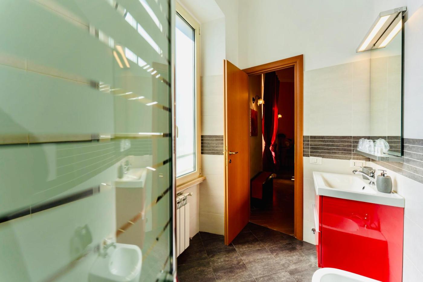 Ampia Camera Matrimoniale. Providing free toiletries and bathrobes, this double room includes a private bathroom with a walk-in shower, a bidet and a hairdryer. The air-conditioned double room provides a flat-screen TV, a tea and coffee maker, a seating area, a wardrobe as well as a quiet street view. The unit offers 1 bed. ;