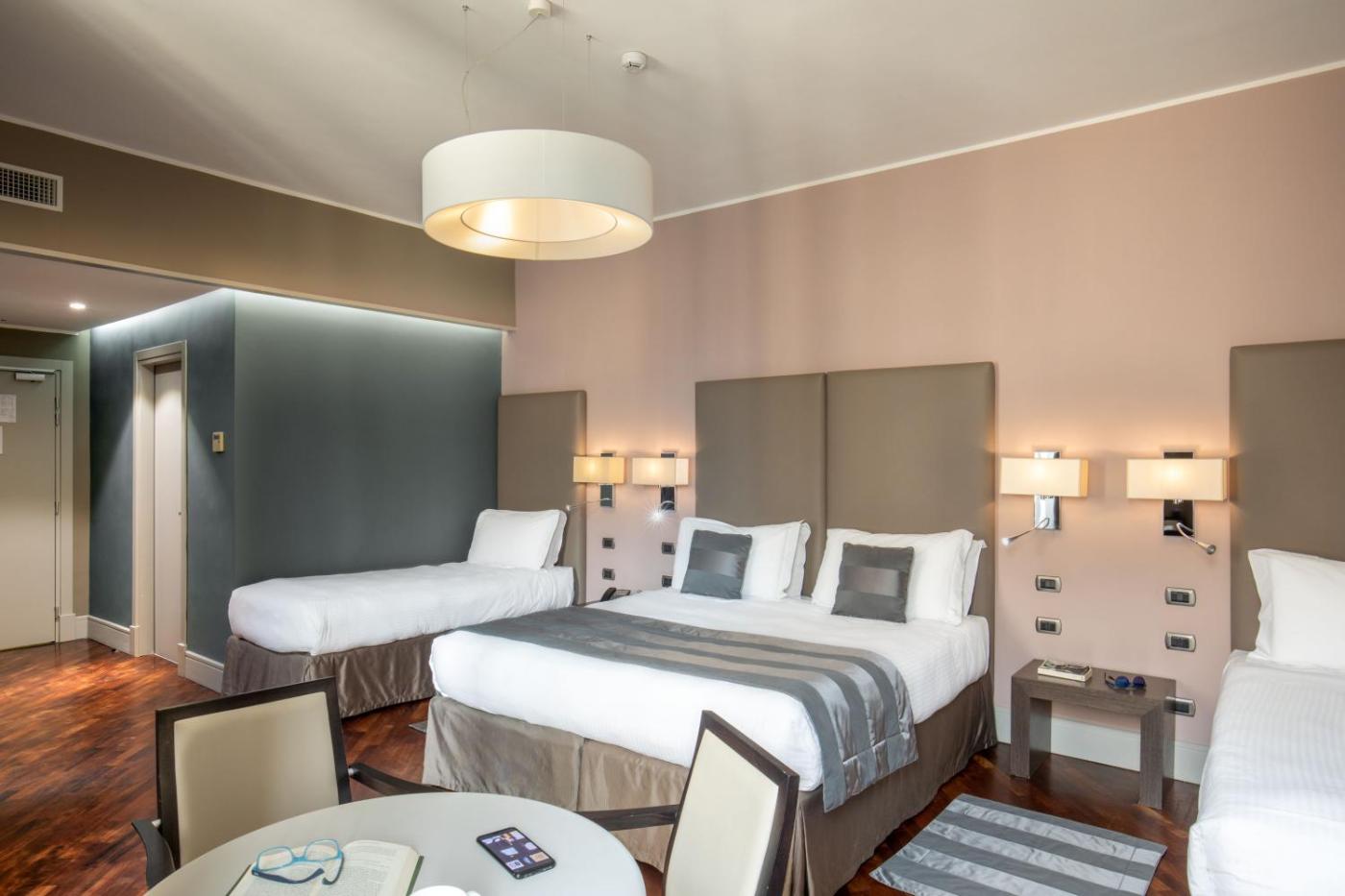 With parquet flooring, room automation system and matching furnishings in primary colours, rooms at the Monti Palace are stylish and contemporary. Each comes with free Wi-Fi and air conditioning.