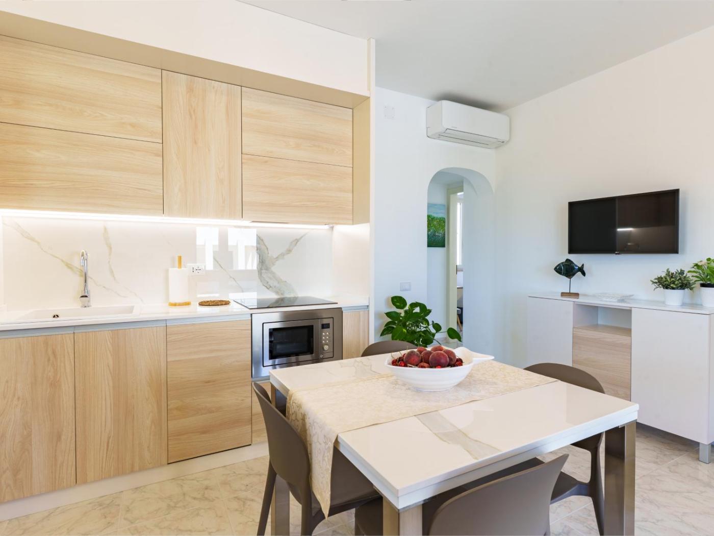 Questa casa vacanze con aria condizionata comprende 2 camere da letto, un soggiorno, una cucina con utensili piĂą frigorifero, e 1 bagno con bidet edi cortesia. Presso questa casa vacanze troverete asciugamani e lenzuola tra i servizi offerti.